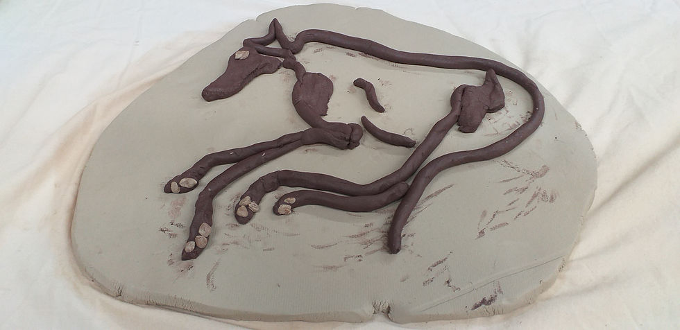 I made the orangutan and Punch by finger drawing in wet slip over earthenware clay. I did this at home. Punch is glazed with my honey glaze. The orangutan is being glazed with Uclan earthenware honey glaze. I look forward to compare the results.